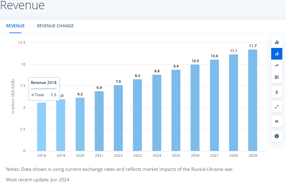 The U.S. e-cigarette market is projected to reach $8.8 billion in revenue by 2024. Additionally, the market is expected to grow at a compound annual growth rate (CAGR) of 5.83% from 2024 to 2029. This robust growth trajectory highlights the increasing popularity of e-cigarettes as a smoking alternative.